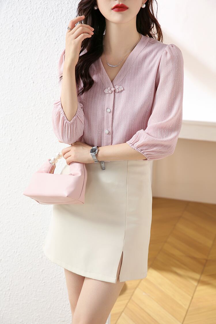 シフォン シャツ ブラウス Vネック ビンテージ A-HHan83869315829