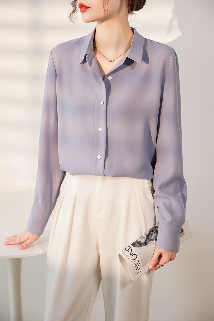 ロング シフォン 長袖 シャツ ブラウス スプリング 春物 ビンテージ A-HHan68130711253