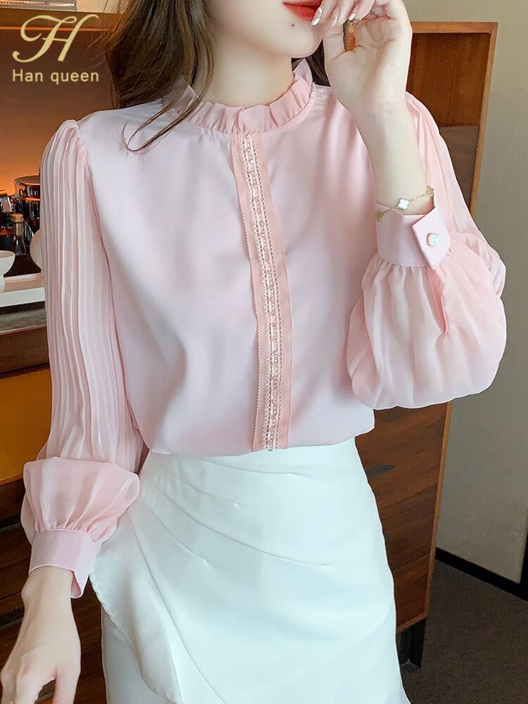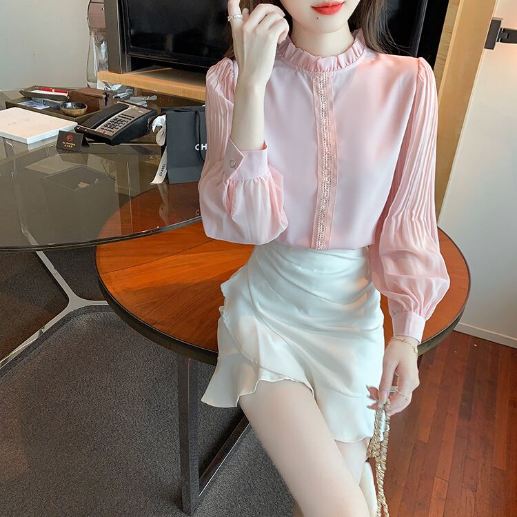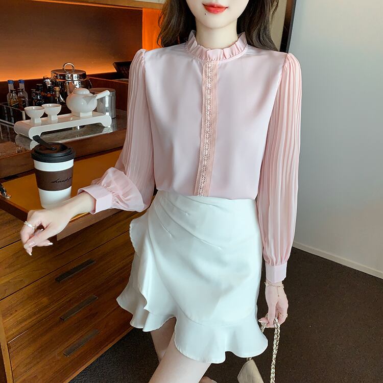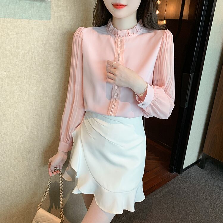 ピンク シフォン シャツ ブラウス オータム 秋物 ビンテージ 会社 学校 通勤や通学にも A-HHan75596683847