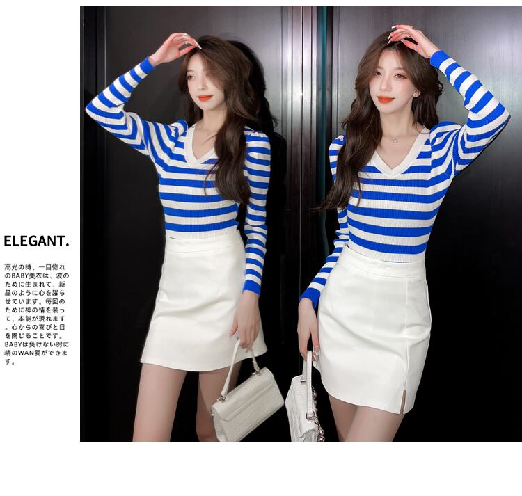 シャツ エラスティック 伸縮 オータム 秋物 ウィンター 冬物 Vネック ストライプ A-HHan42942135150