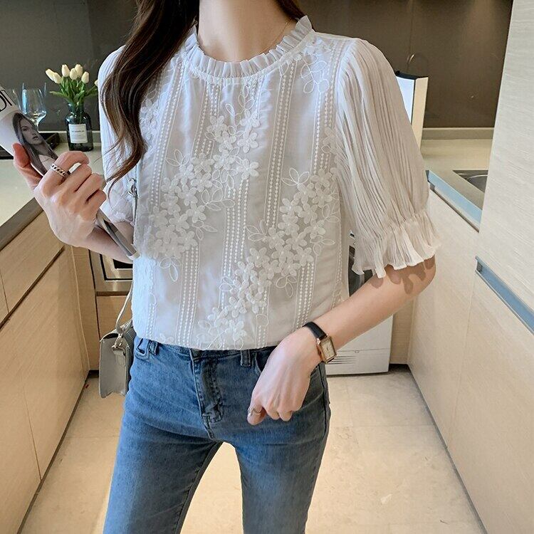 フレアスリーブ シフォン シャツ ブラウス サマー 夏物 ビンテージ 会社 学校 通勤や通学にも A-HHan11654354537