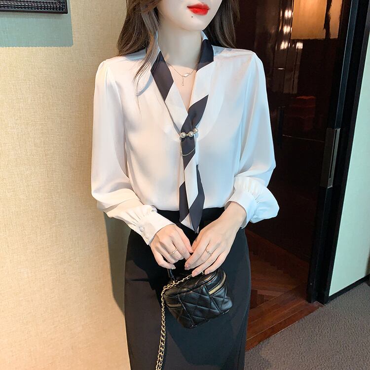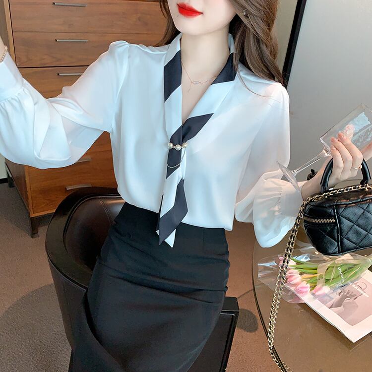 レース シャツ ブラウス オータム 秋物 ウィンター 冬物 Vネック レースアップ ビンテージ 会社 学校 通勤や通学にも A-HHan36739854524
