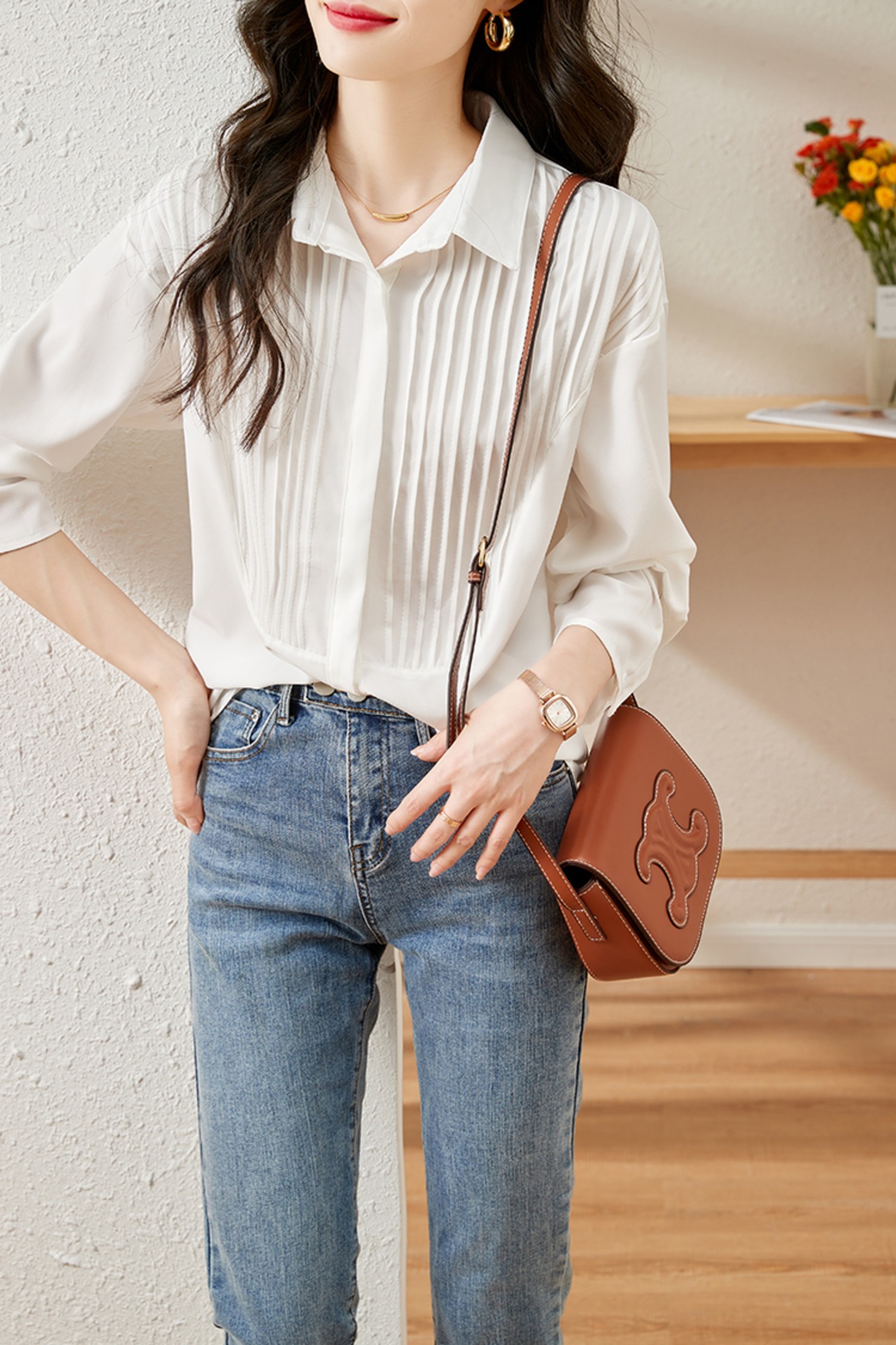 ロング 長袖 ブラウス プリーツ スプリング 春物 オータム 秋物 会社 学校 通勤や通学にも A-HHan78860140741