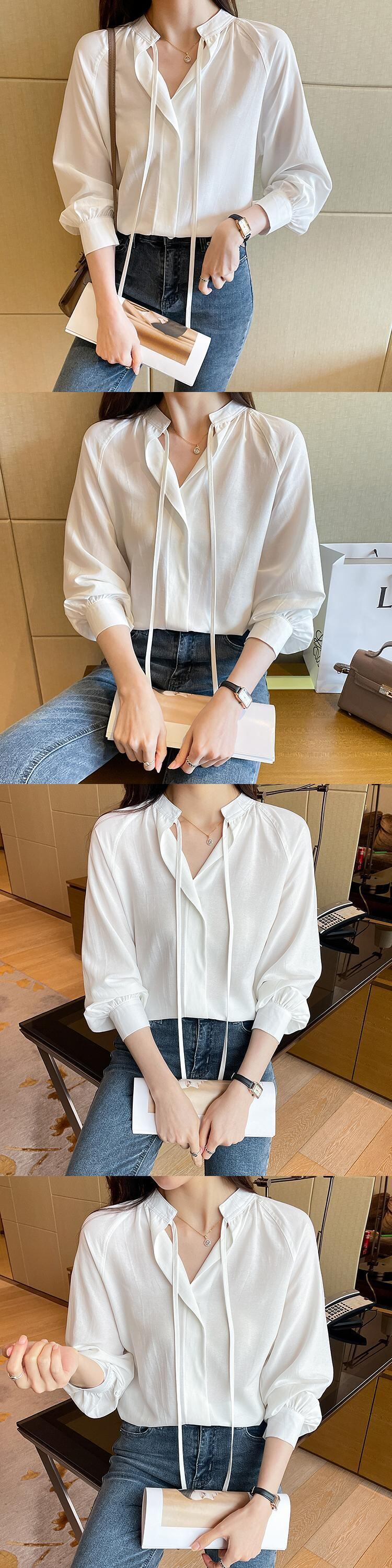 ロング シフォン 長袖 ブラウス オータム 秋物 会社 学校 通勤や通学にも A-HHan2298997883