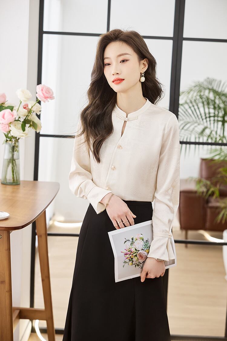 フレアスリーブ シフォン ブラウス スプリング 春物 ビンテージ 会社 学校 通勤や通学にも A-HHan57892467556
