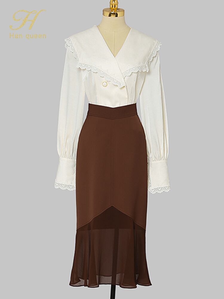 ホワイト ブラウス オータム 秋物 スカート A-HHan13383258993