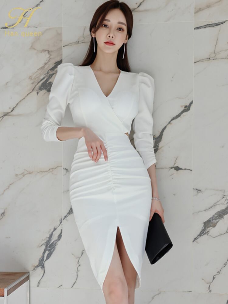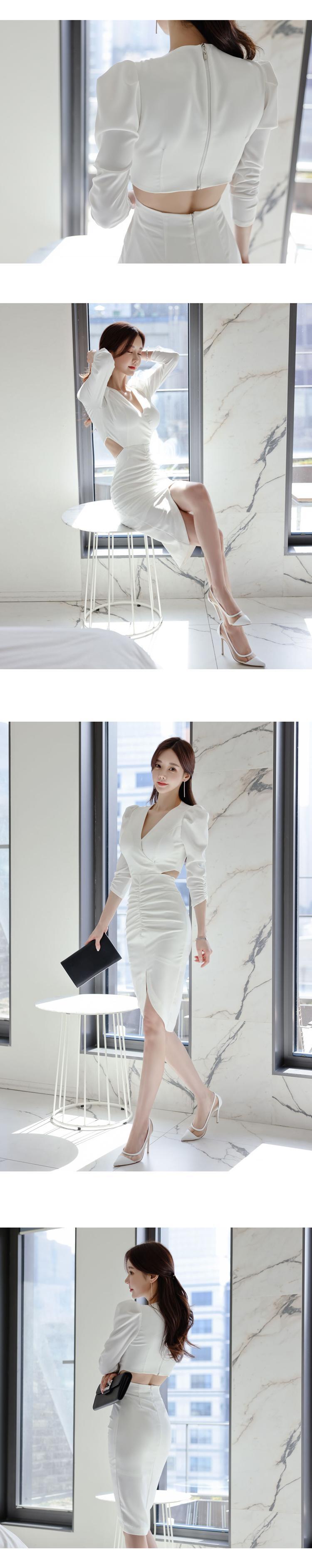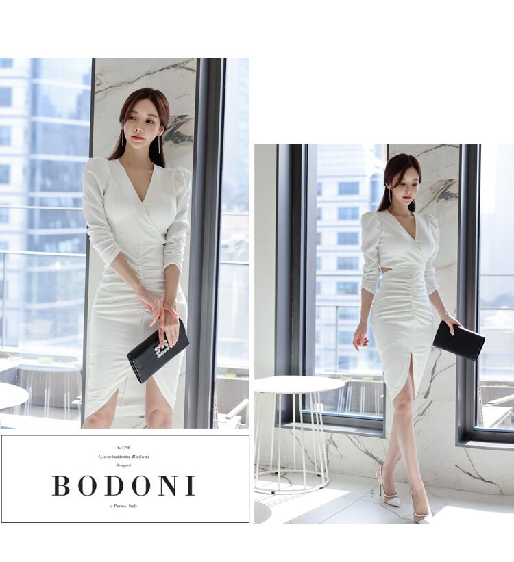 ホワイト スプリング 春物 ドレス Vネック 会社 学校 通勤や通学にも A-HHan83717323376
