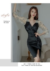 レトロ レース ドレス Vネック 会社 学校 通勤や通学にも A-HHan40303785078