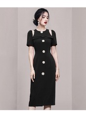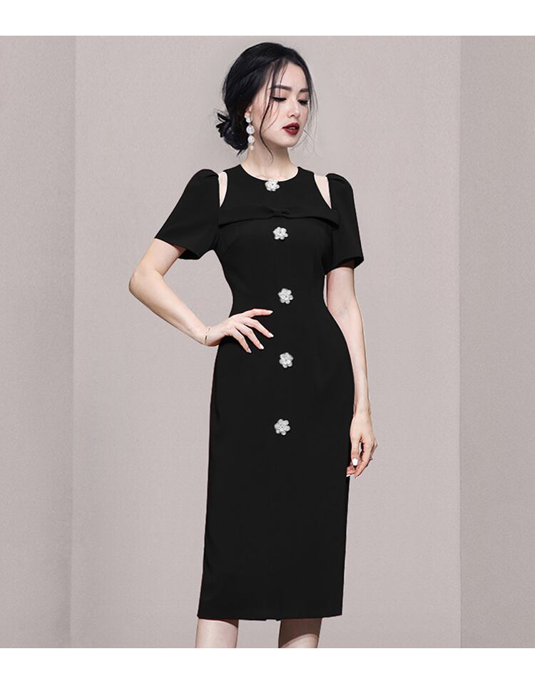 ショート レトロ 半袖 ハーフスリーブ サマー 夏物 ドレス スリム A-HHan18183661635