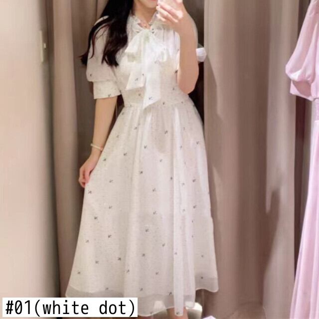 ロング リボン 大人ガーリー スウィート キュート カジュアル サマー 夏物 ドレス Oネック スリム JPLS11538741947