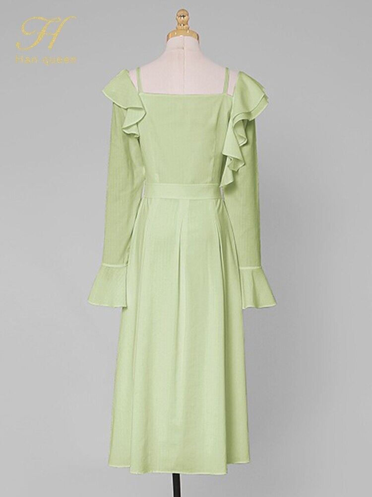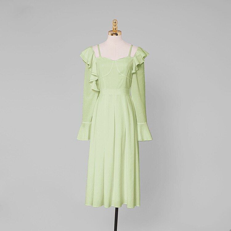フレアスリーブ フリル ラッフル オータム 秋物 ウィンター 冬物 ドレス スリム 会社 学校 通勤や通学にも A-HHan88705398429