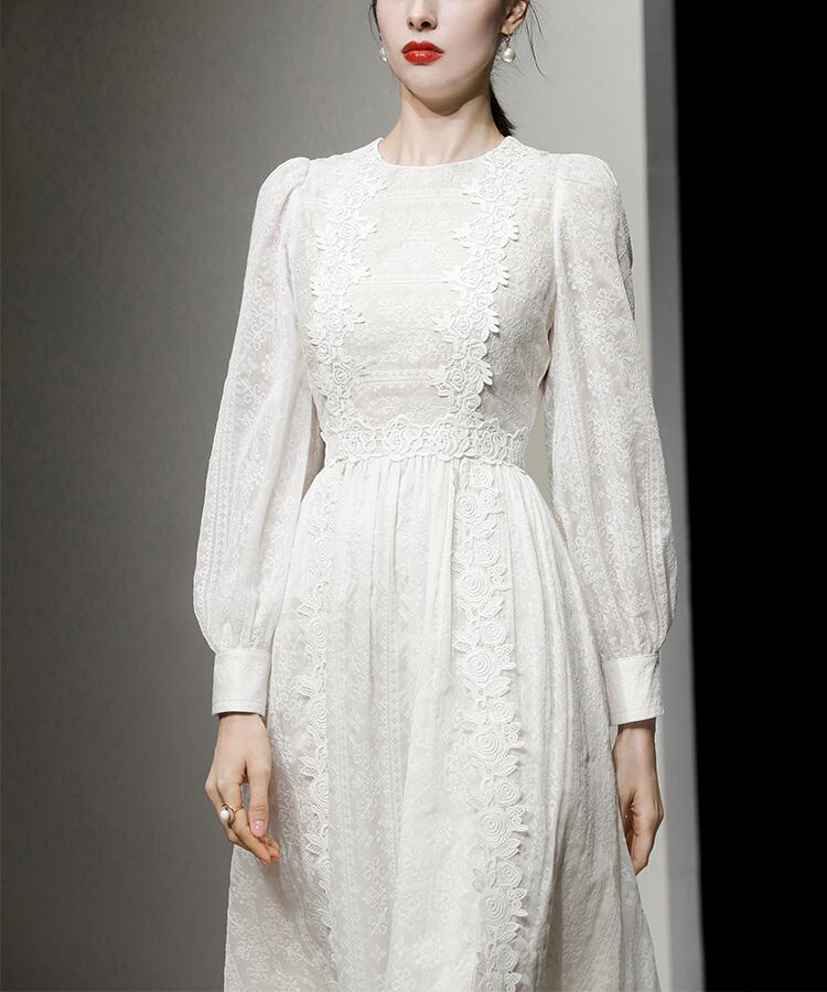 ホワイト オータム 秋物 ドレス Aライン ビンテージ A-HHan2650001367