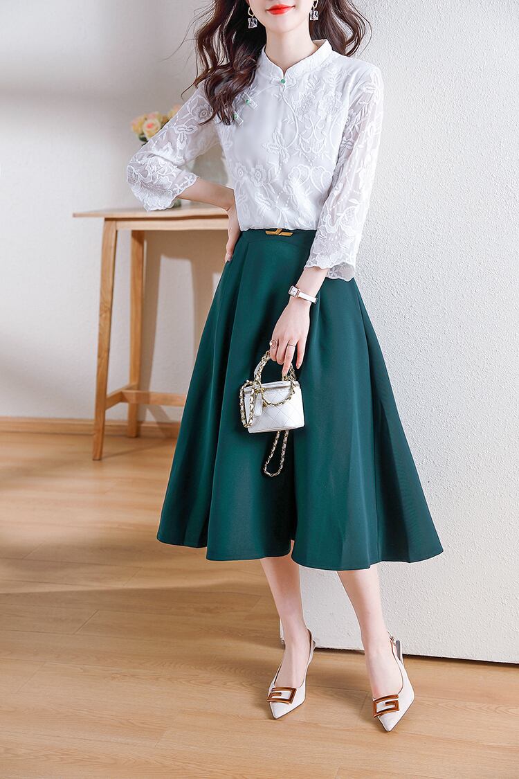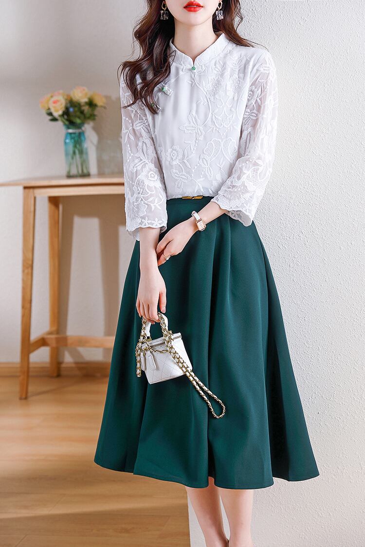 ホワイト シフォン レース ブラウス サマー 夏物 ビンテージ 会社 学校 通勤や通学にも A-HHan76275830766