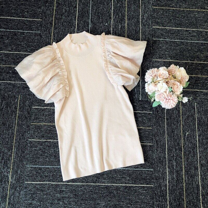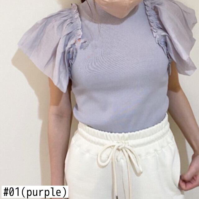 ショート 半袖 ハーフスリーブ フリル ラッフル ブラウス サマー 夏物 Oネック ソリッドカラー JPLS90300219157