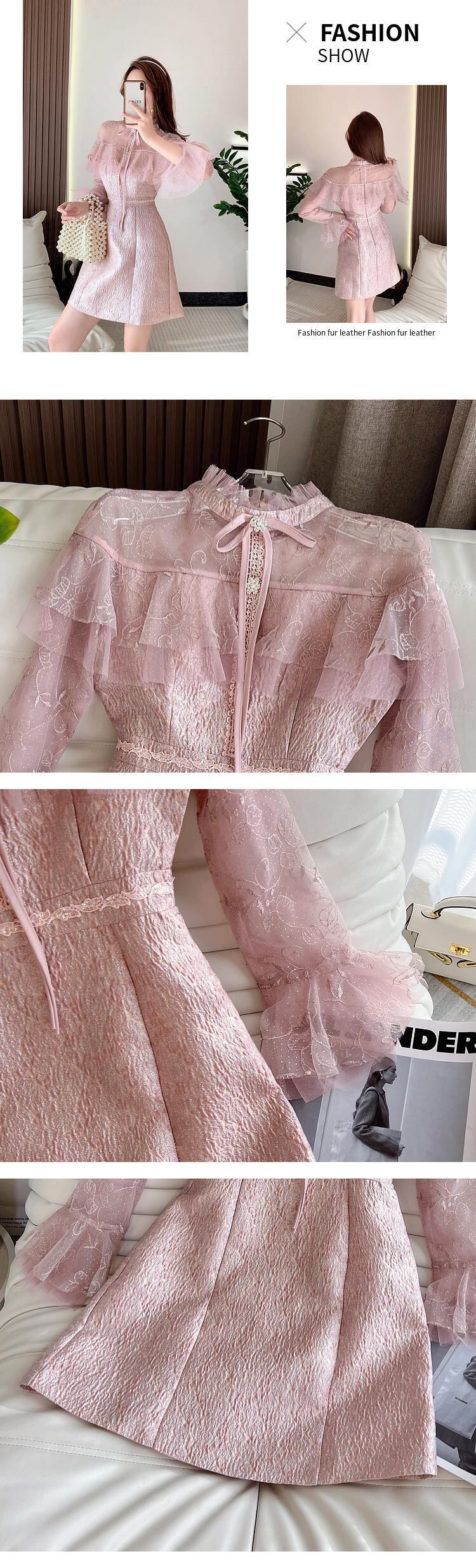 フリル ラッフル 刺繍 スプリング 春物 メッシュ ドレス Aライン スリム 会社 学校 通勤や通学にも A-HHan58240481764