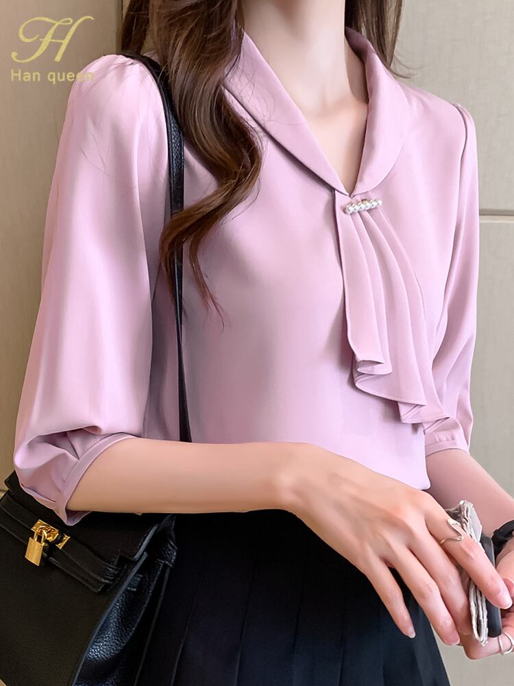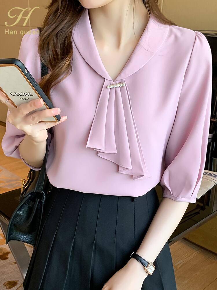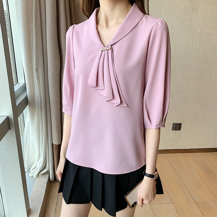 ショート シフォン 半袖 ハーフスリーブ シャツ ブラウス サマー 夏物 ビンテージ 会社 学校 通勤や通学にも A-HHan51888354669