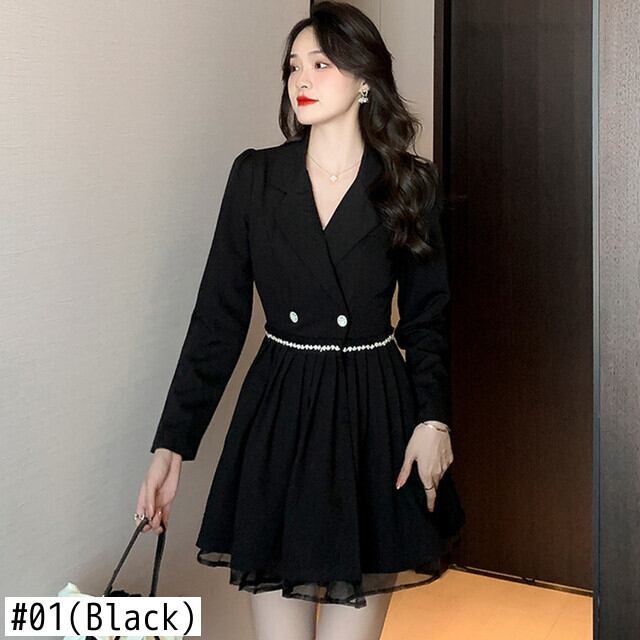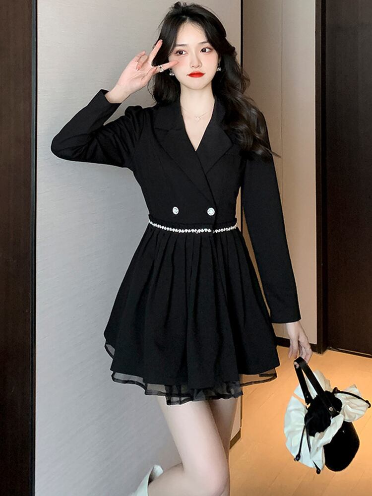 ロング ミニ ブラック レトロ 長袖 ストリート プリーツ スプリング 春物 オータム 秋物 メッシュ ドレス MingJieBiHuo29963877091