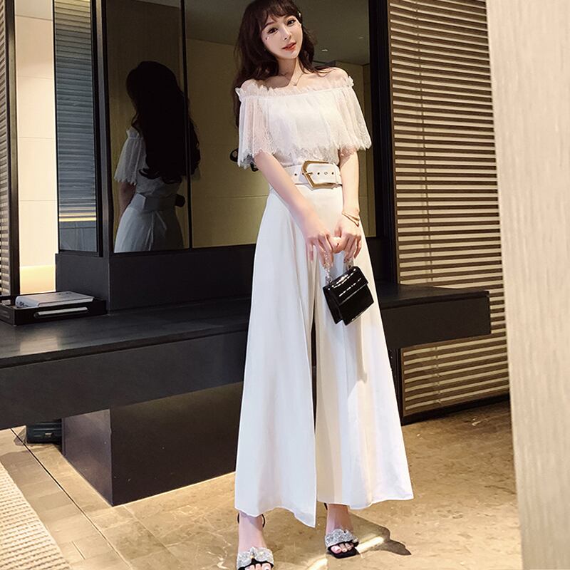 ショート レース 半袖 ハーフスリーブ ブラウス ストリート オフショルダー ワイドレッグ ワイドパンツ ビンテージ MingJieBiHuo58990895839