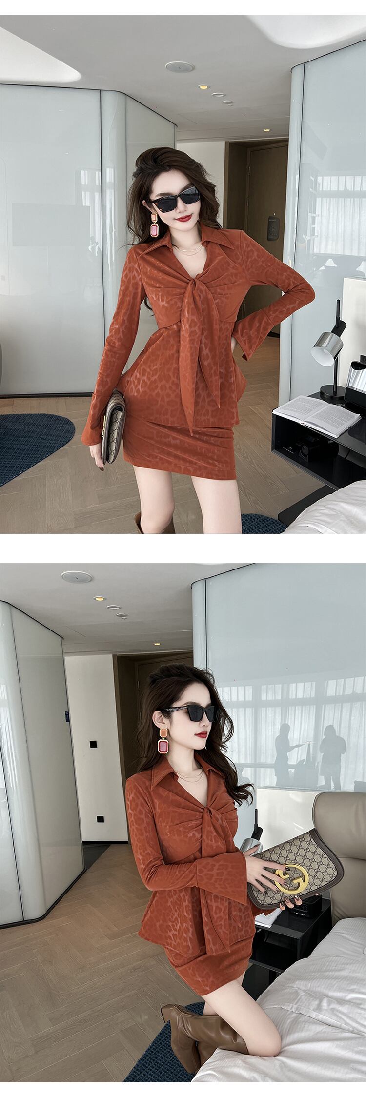 ミニ レトロ ブラウス スプリング 春物 オータム 秋物 スカート スリム MingJieBiHuo36506110344