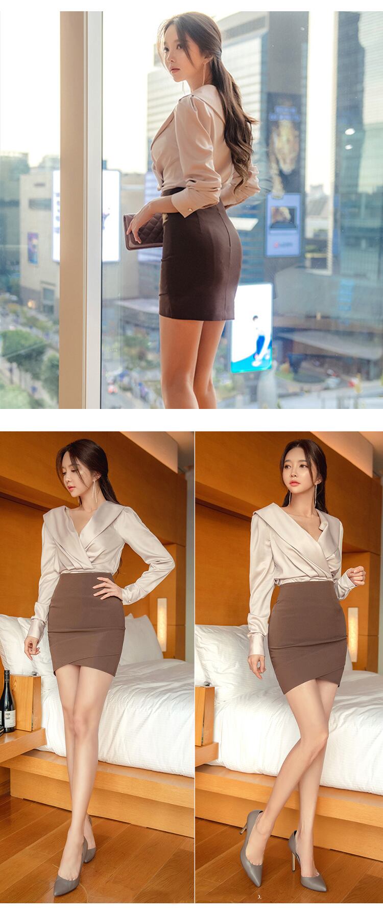 ミニ レトロ プリーツ スプリング 春物 スカート Vネック MingJieBiHuo10147898006