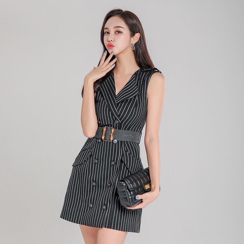 エレガント サマー 夏物 ノースリーブ Aライン ストライプ スリム ビンテージ MingJieBiHuo88464794260
