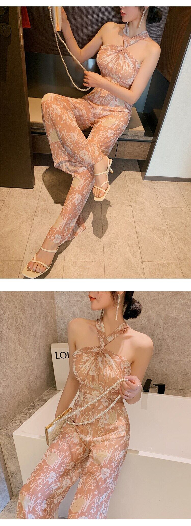 ロング シフォン サマー 夏物 オフショルダー ワイドレッグ ワイドパンツ MingJieBiHuo16581815464