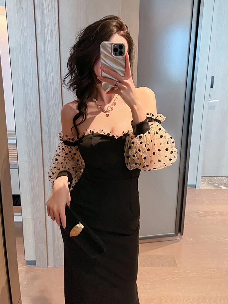 スプリング 春物 オータム 秋物 メッシュ ドレス スリム オフショルダー MingJieBiHuo55990967945