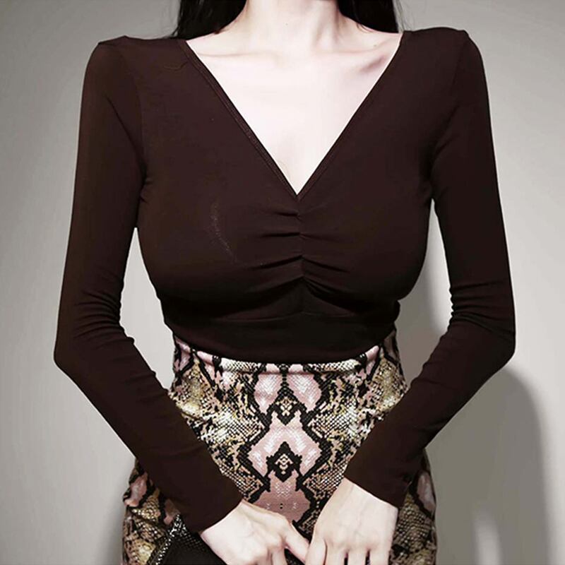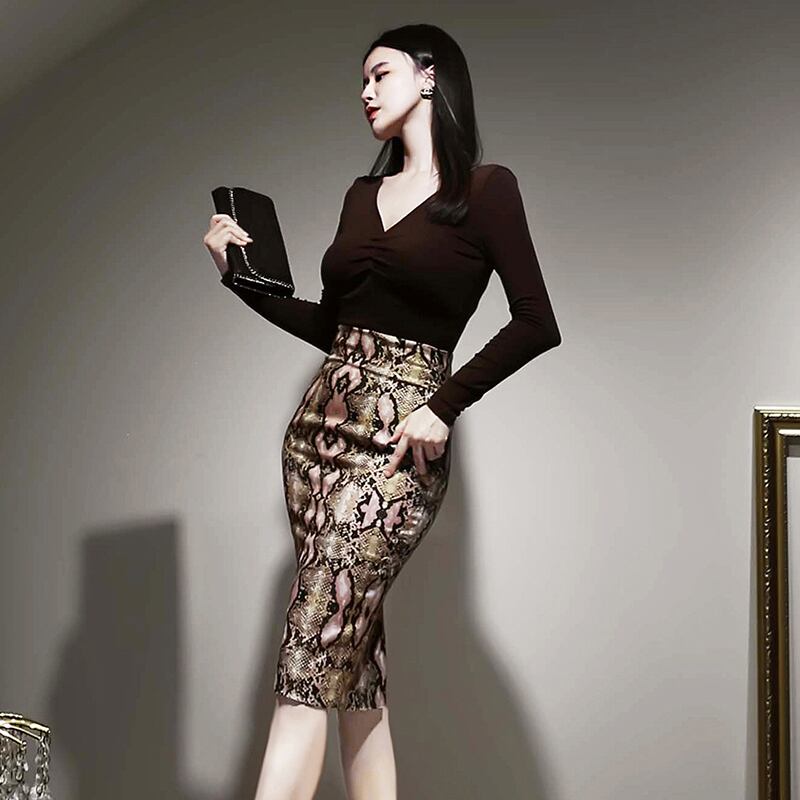 ロング 長袖 スカート Vネック Tシャツ 会社 学校 通勤や通学にも MingJieBiHuo20404831174
