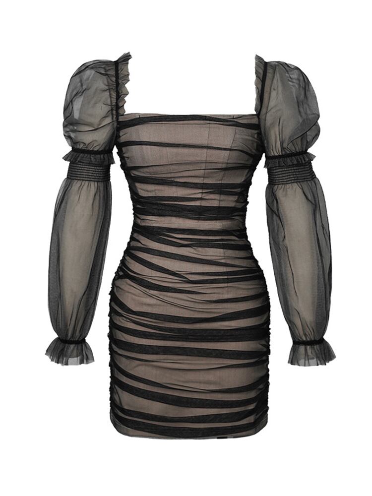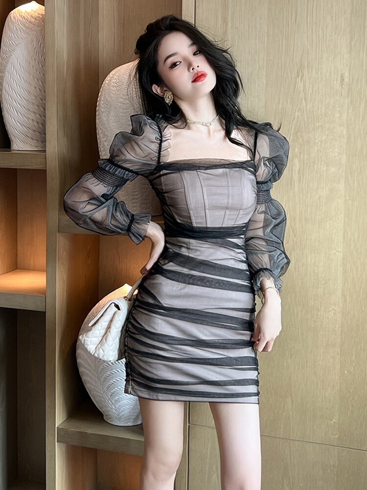 ブラック サマー 夏物 メッシュ ドレス スリム スクウェア MingJieBiHuo84174291053