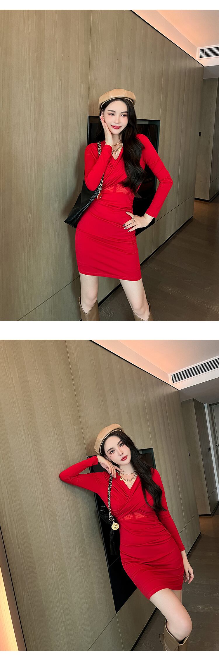 ミニ ストリート スプリング 春物 オータム 秋物 ドレス Vネック MingJieBiHuo46817688623