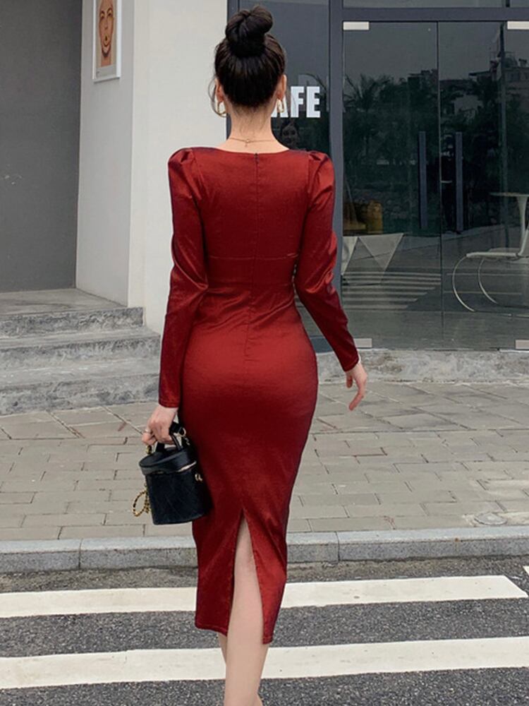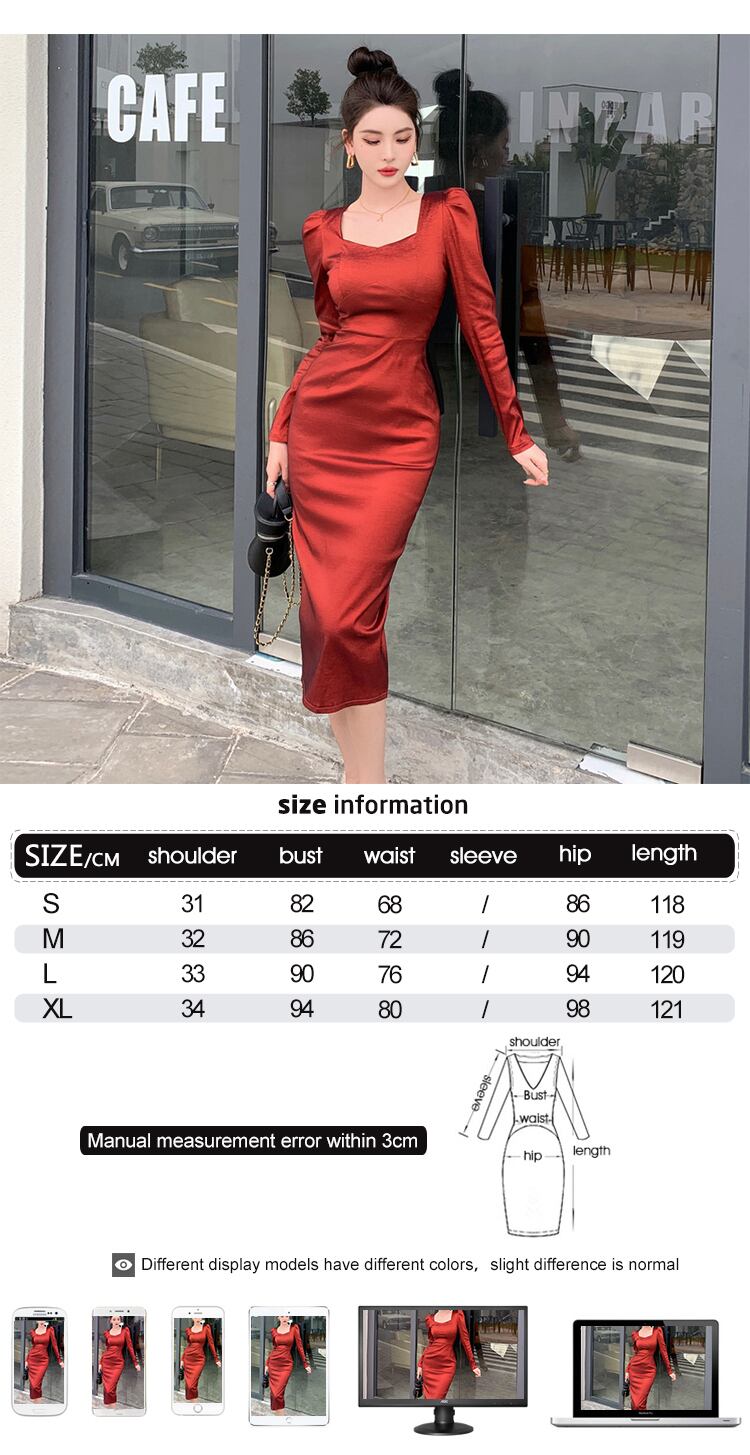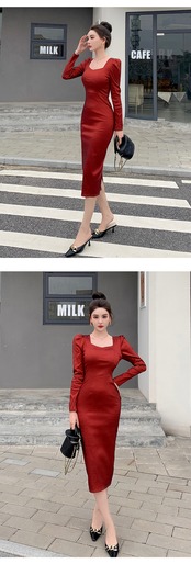 スプリング 春物 オータム 秋物 ドレス スリム スクウェア 会社 学校 通勤や通学にも MingJieBiHuo31926079743