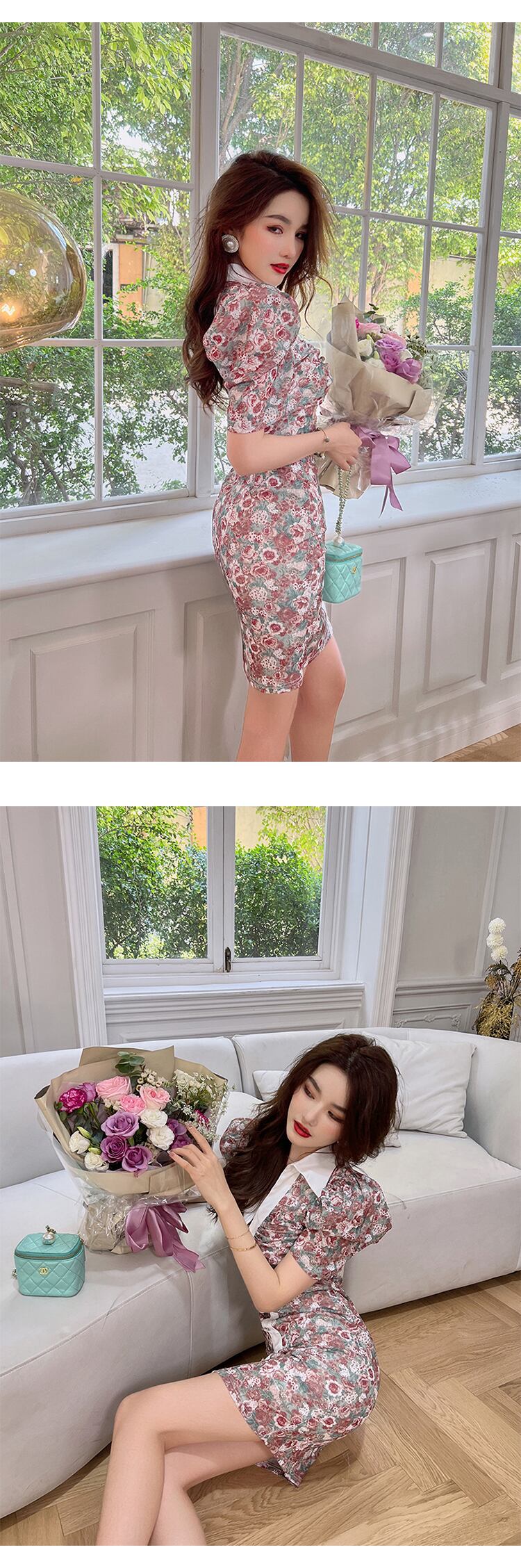 ミニ レトロ サマー 夏物 花柄 スリム MingJieBiHuo45353146762