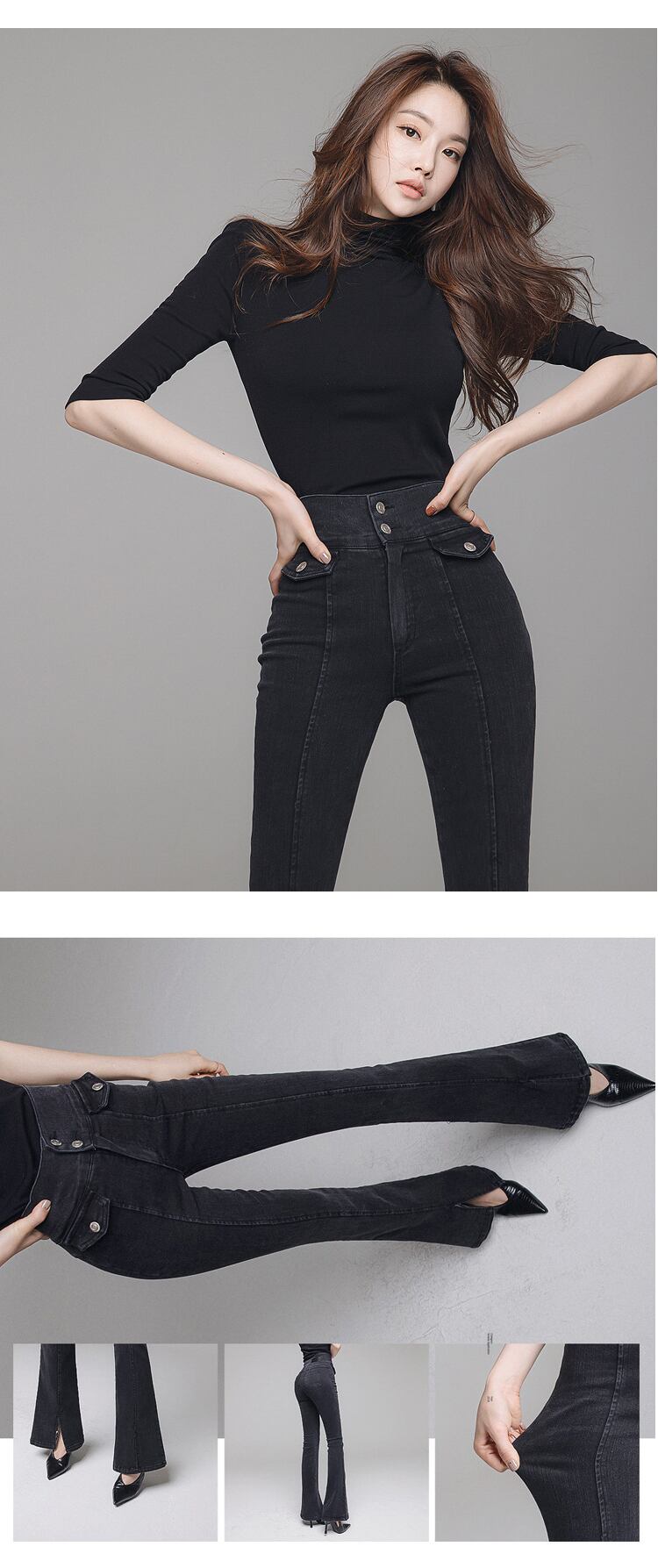 ハイウェスト ロング ブラック スプリング 春物 スリム MingJieBiHuo5582001554
