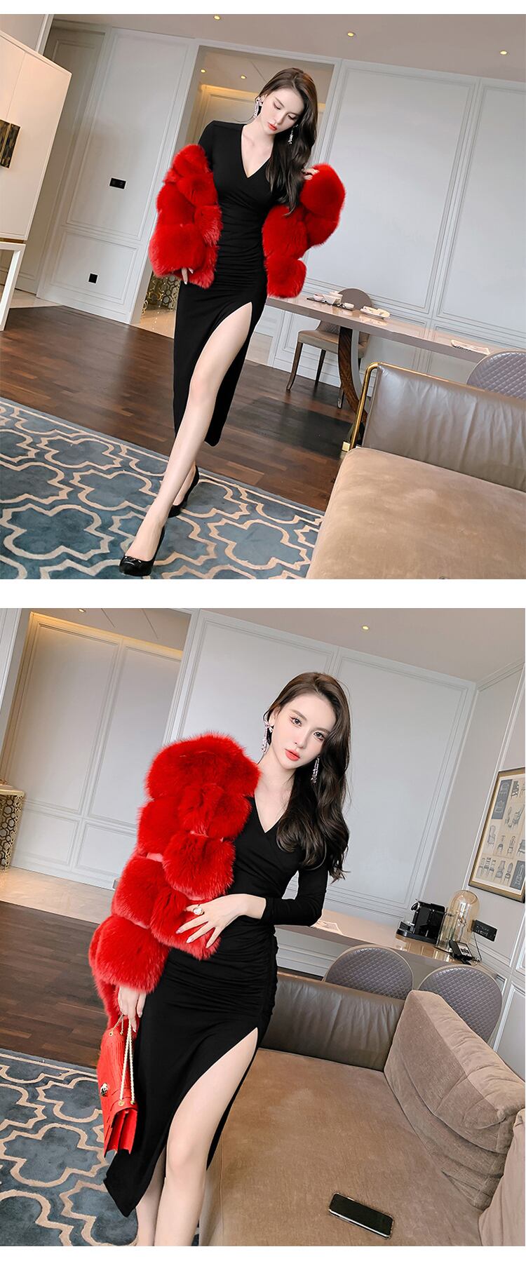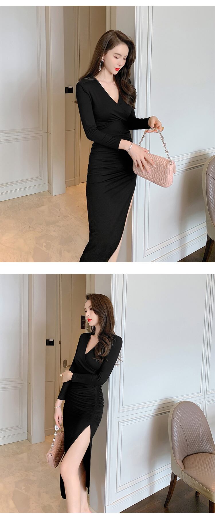 ロング ブラック 長袖 Vネック ビンテージ MingJieBiHuo47189696795
