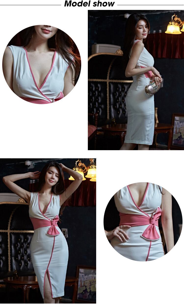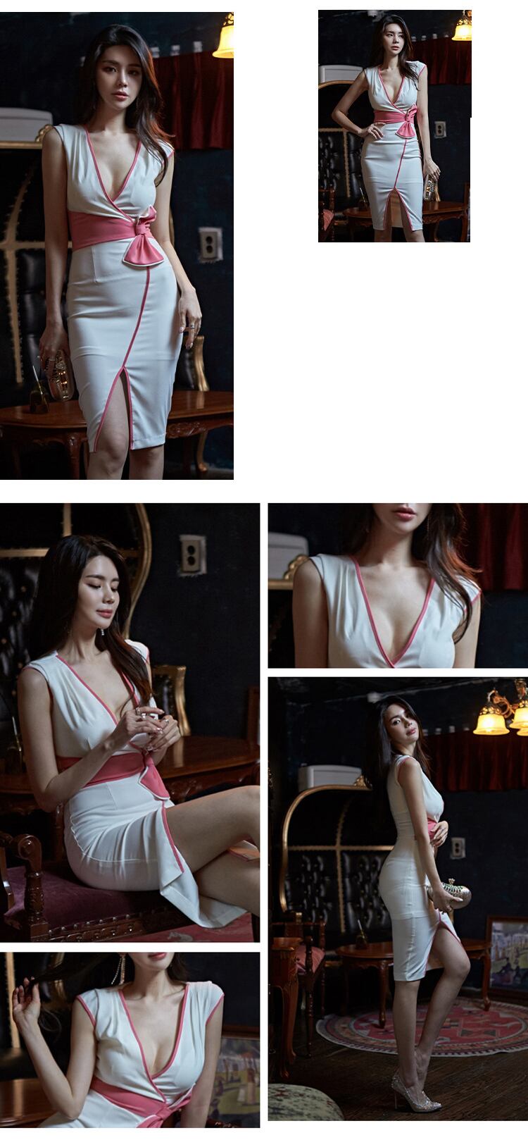 ホワイト リボン コットン エレガント サマー 夏物 ノースリーブ Vネック スリム MingJieBiHuo42304609562