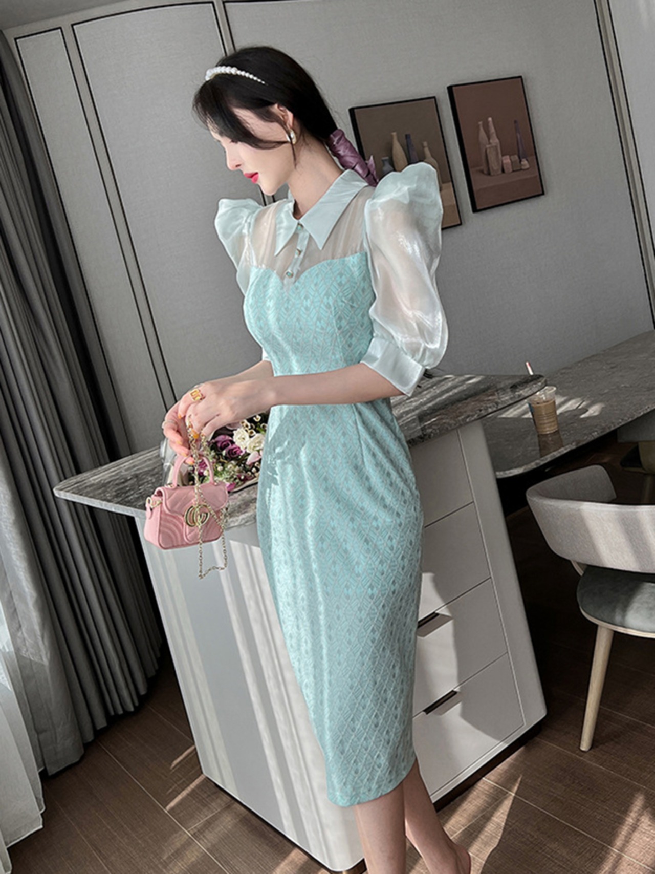 レース 刺繍 サマー 夏物 メッシュ スリム ビンテージ MingJieBiHuo43407628644