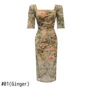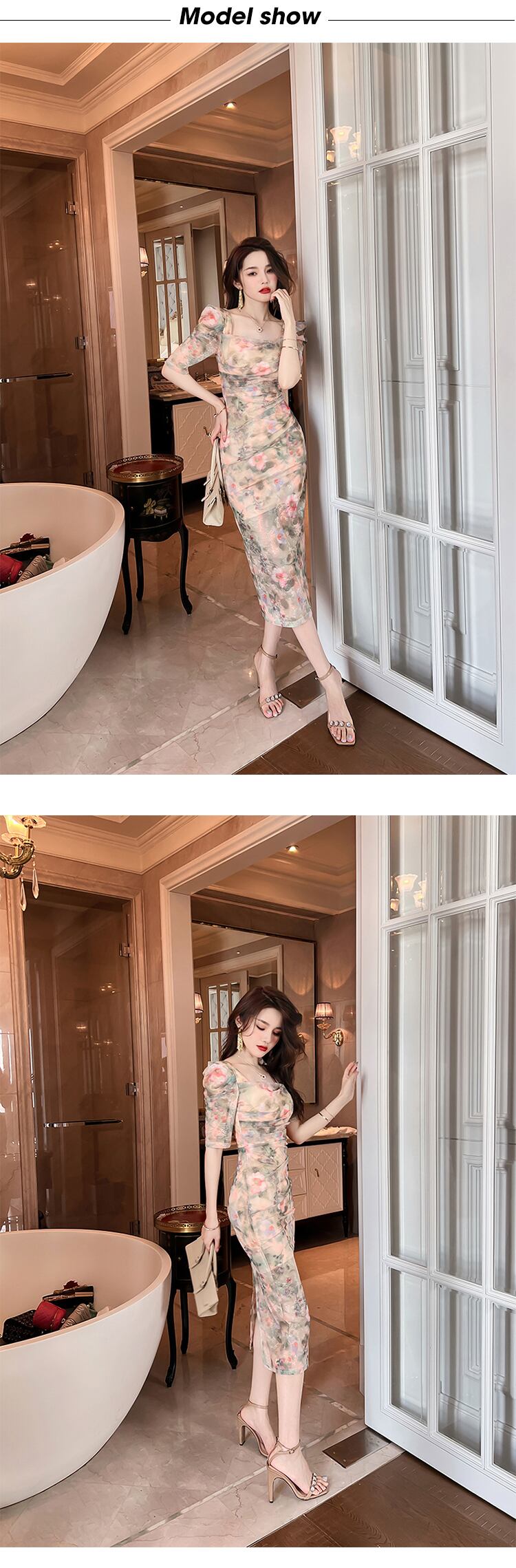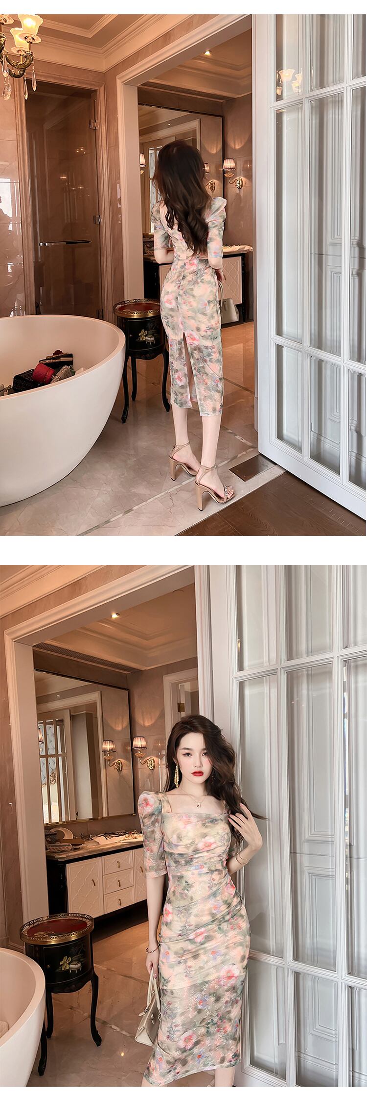 ロング レトロ ストリート サマー 夏物 メッシュ ドレス 花柄 スリム スクウェア MingJieBiHuo70108105198