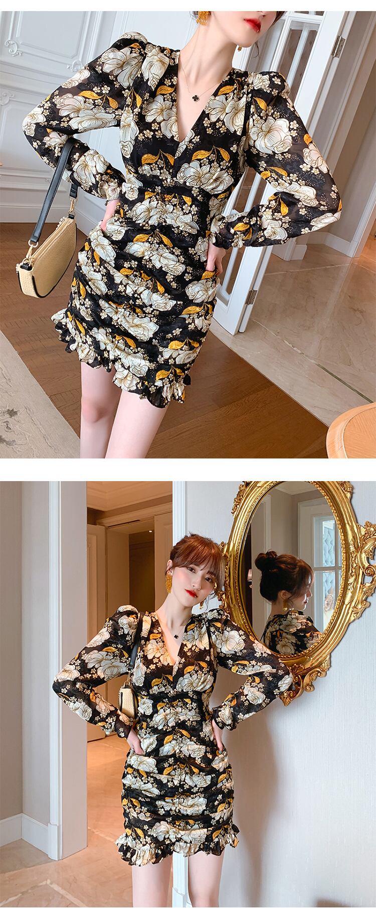 ショート ミニ レトロ 大人ガーリー スウィート キュート カジュアル スプリング 春物 ビーチ 花柄 Vネック MingJieBiHuo32682699816