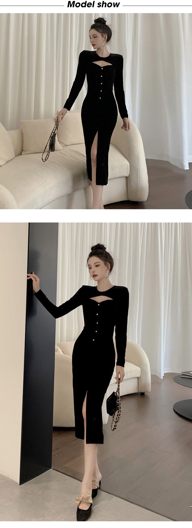ブラック スプリング 春物 オータム 秋物 ドレス Oネック ビンテージ MingJieBiHuo37040680033
