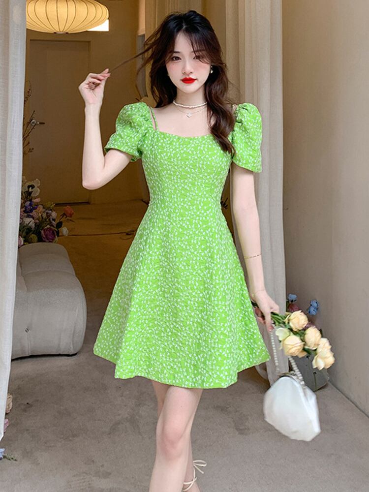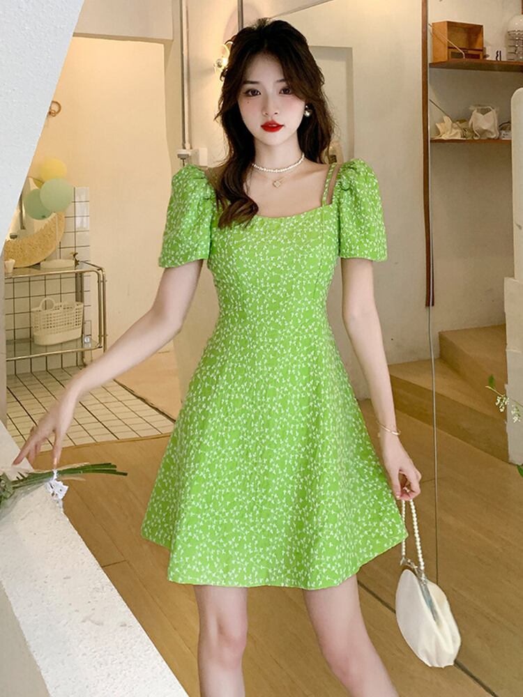 ミニ ストリート 大人ガーリー スウィート キュート カジュアル サマー 夏物 スリム オフショルダー フラワーデザイン MingJieBiHuo54833573617