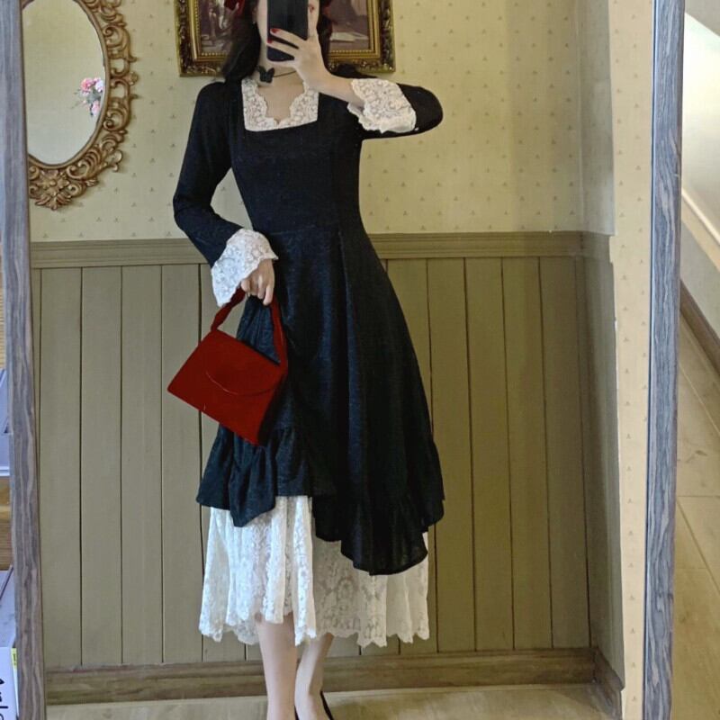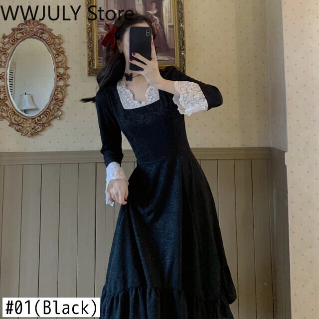 ロング ブラック レース 長袖 ウィンター 冬物 ビンテージ WWJULY1109314871