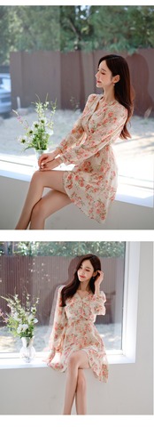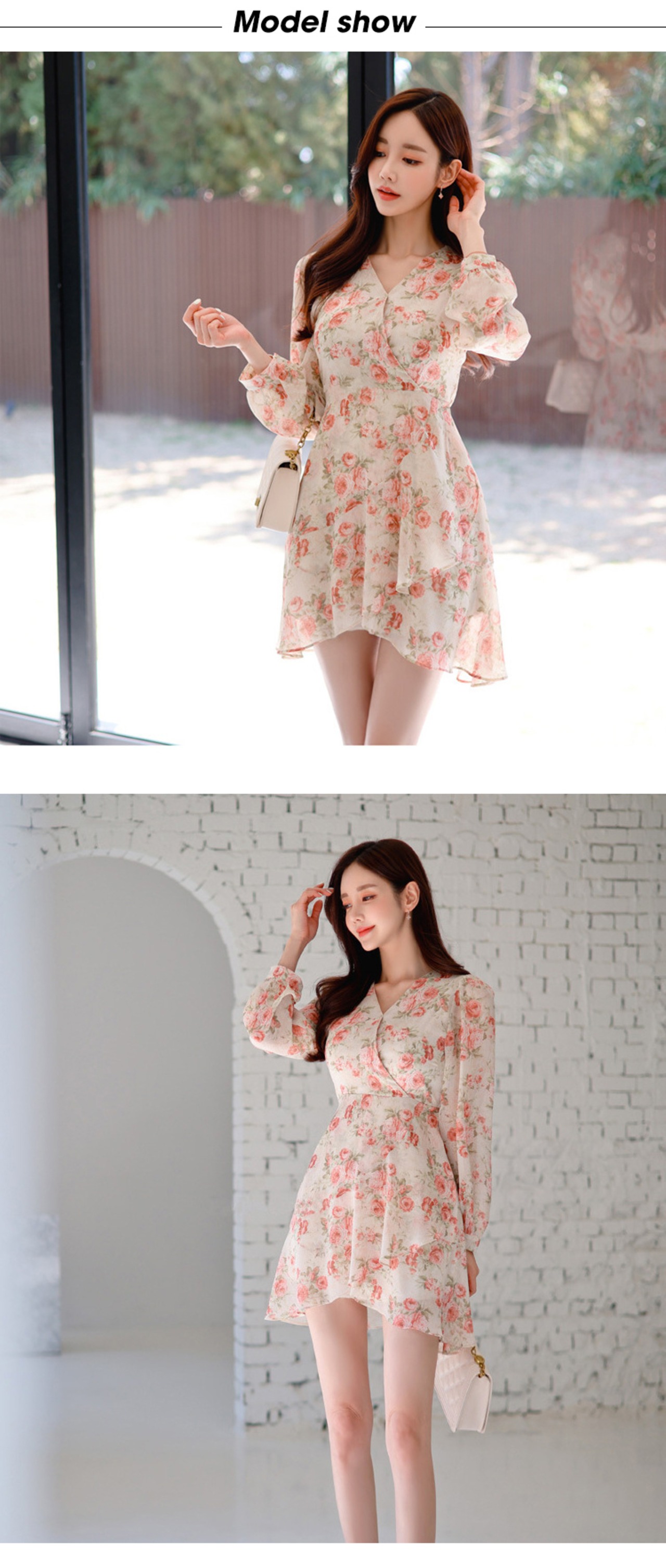 ミニ 大人ガーリー スウィート キュート カジュアル ビーチ Vネック スリム フラワーデザイン MingJieBiHuo6814534354