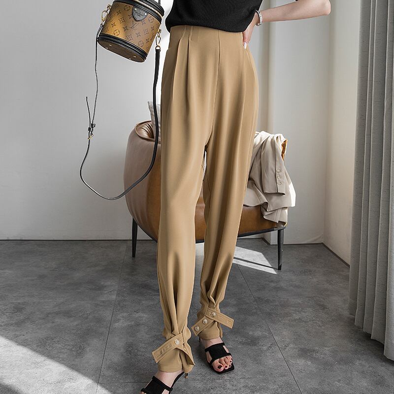 ハイウェスト ロング レトロ カジュアル プリーツ スプリング 春物 アジャスタブル MingJieBiHuo32600900236