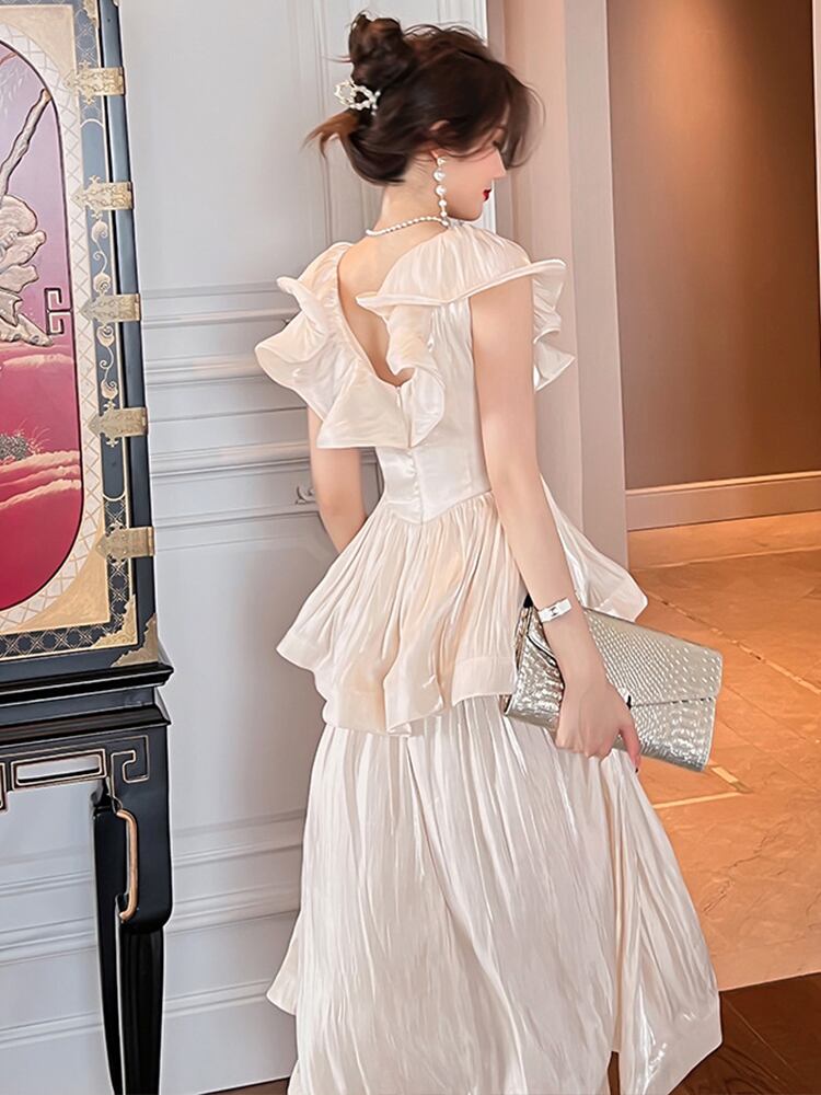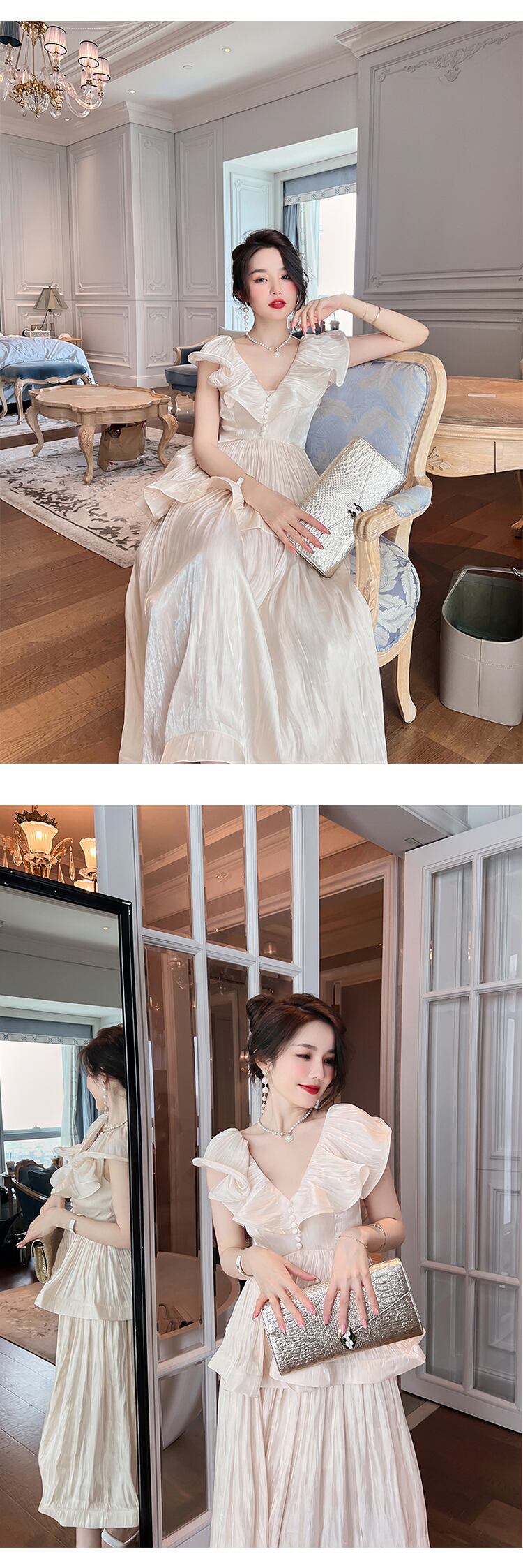 ロング フリル ラッフル サマー 夏物 ドレス Aライン サテン ソリッドカラー MingJieBiHuo98507098092