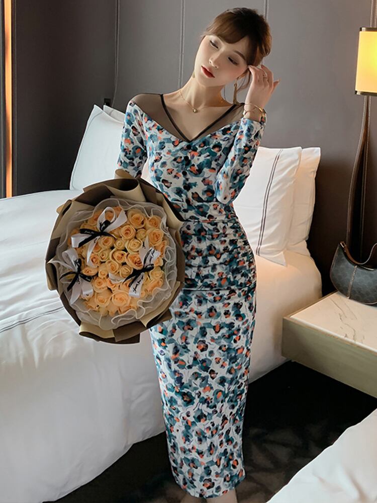 ストリート スプリング 春物 オータム 秋物 メッシュ ドレス Vネック MingJieBiHuo76682360774