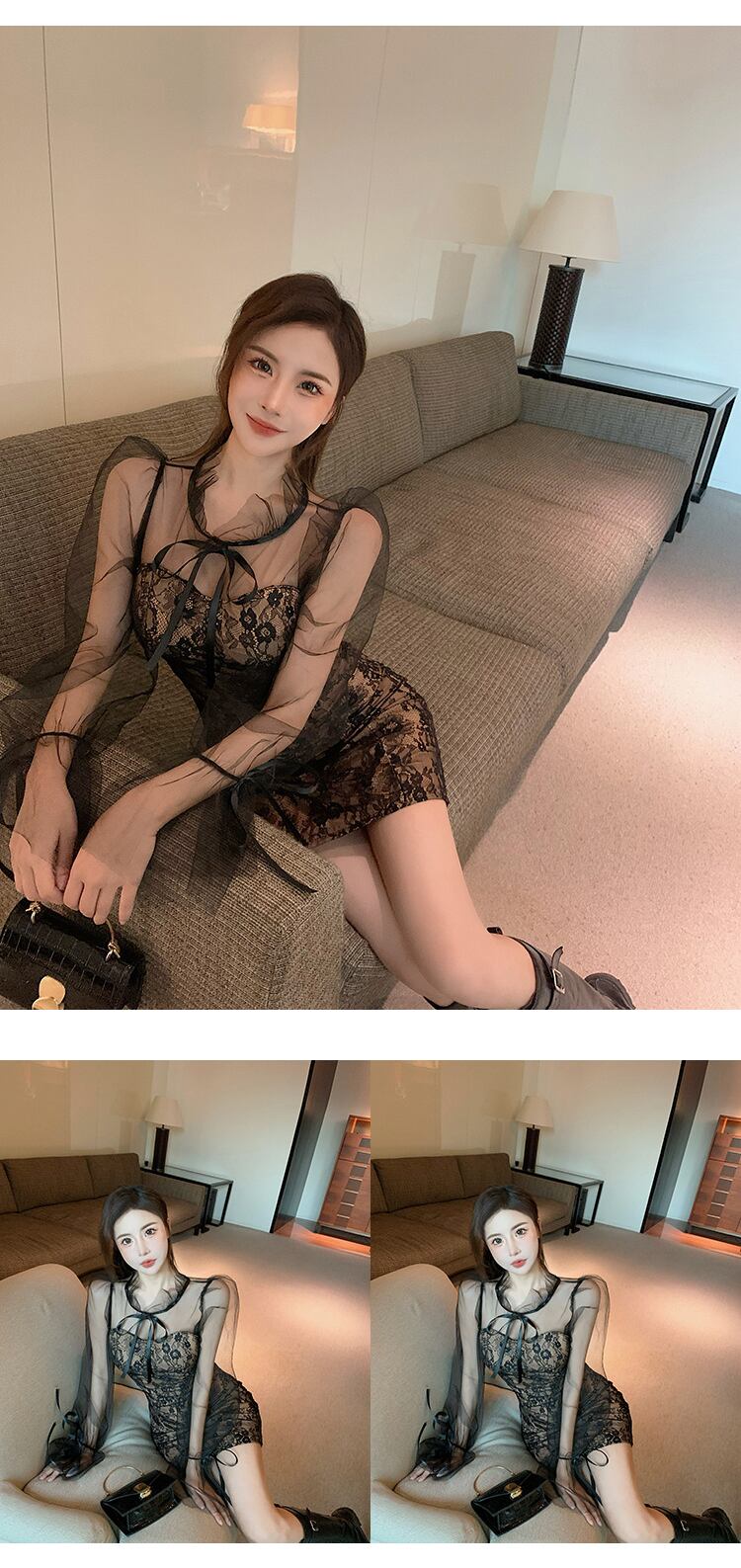 ロング ミニ レトロ 長袖 ストリート 刺繍 メッシュ Oネック MingJieBiHuo23214472222