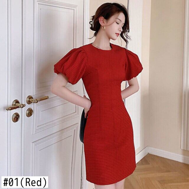 ショート ミニ ランタンスリーブ サマー 夏物 ビーチ Oネック ソリッドカラー ビンテージ MingJieBiHuo72362757026