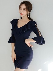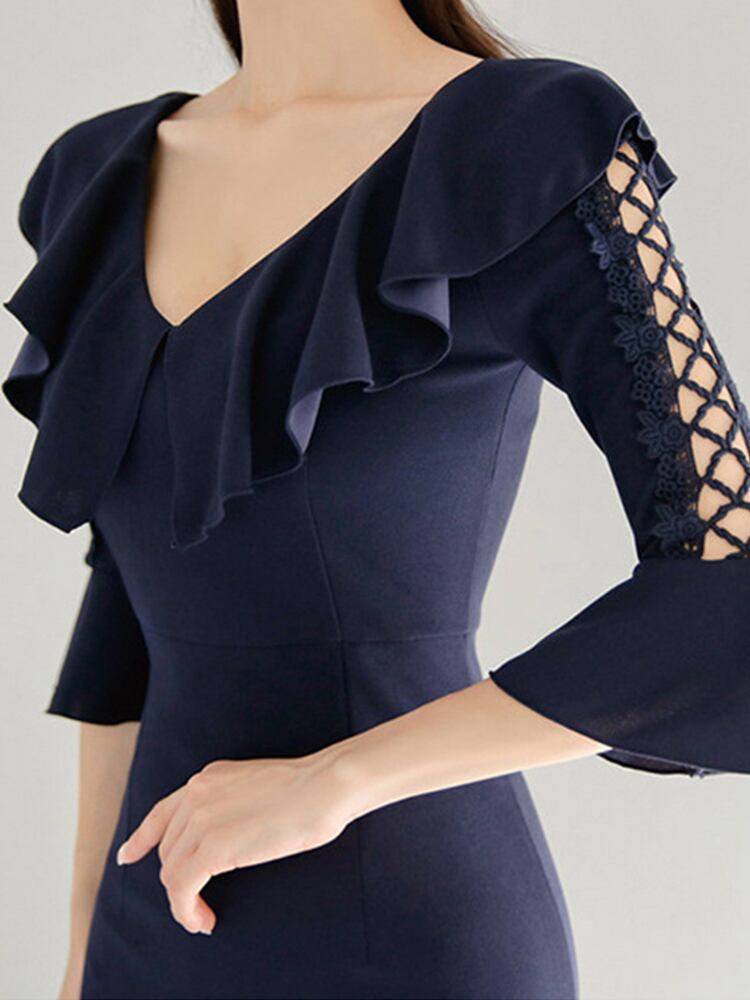 ミニ フリル ラッフル カジュアル Vネック MingJieBiHuo69774768802
