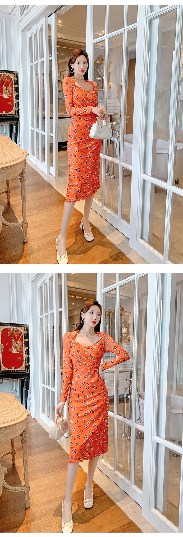 ロング 長袖 花柄 スクウェア ビンテージ MingJieBiHuo94373638544