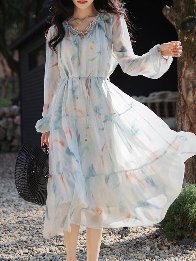 ロング シフォン 長袖 サマー 夏物 ビーチ 花柄 WWJULY18410144892